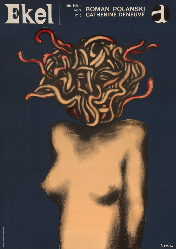 Jan Lenica’s British Quad design for Polanski’s Repulsion is an iconic poster, but less familiar is this alternative design. Instead of adapting and recycling the same concept, Lenica’s fertile imagination produced a completely separate and equally striking visual metaphor.