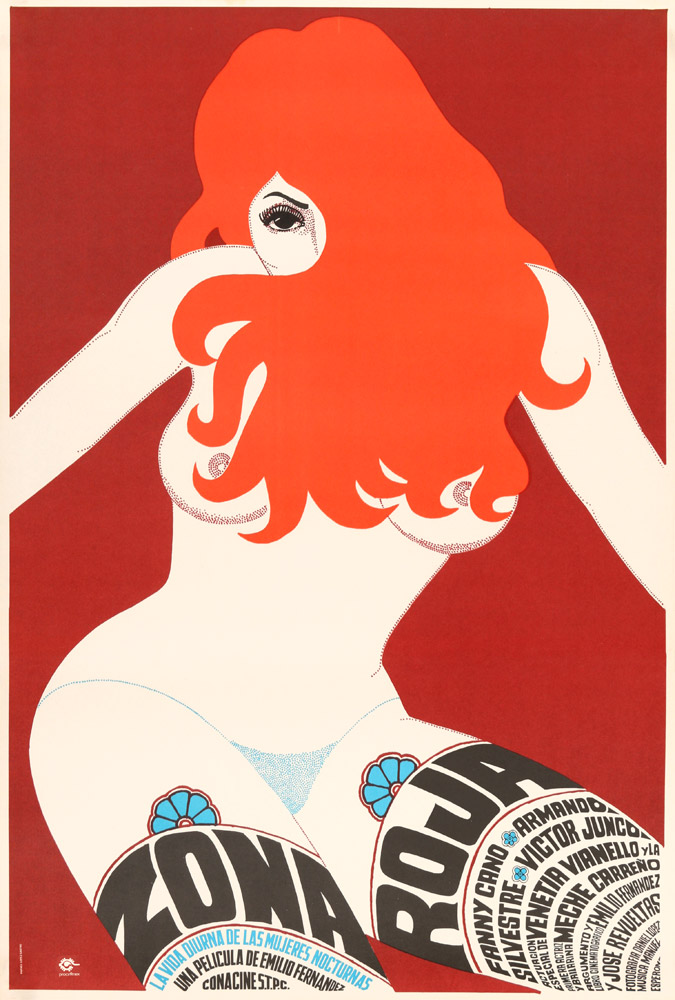 A great graphical device here; the girl’s stockings are fashioned from the film title and credits, with the lines of type warped to match the curves of her thighs. Similar effects feature in several of my favourite posters from Jerzy Flisak and Saul Bass.