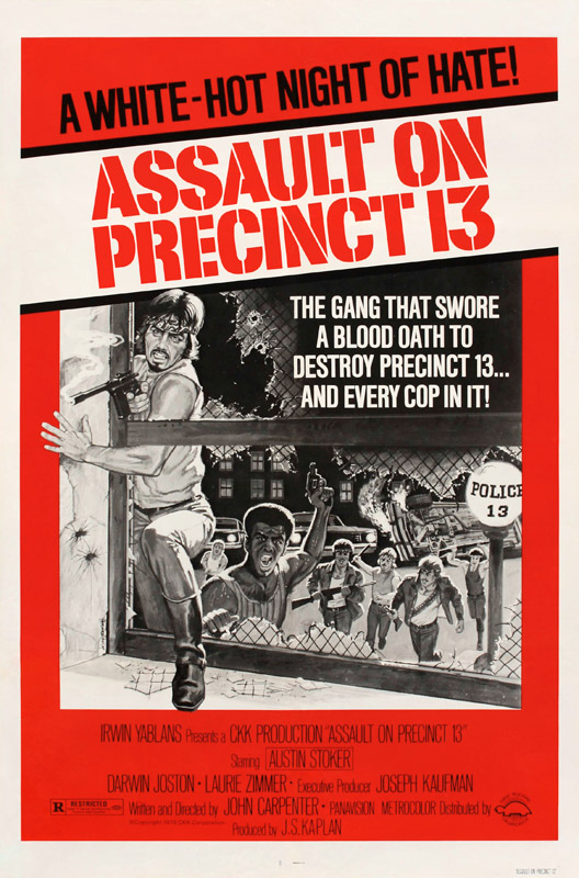 An early picture from low-budget specialist John Carpenter, and the poster adopts a suitable stylistic approach with no frills. The stencil headline font suggests wholesale industrial functionality, and nicely evokes the utilitarian graphics of the armed security forces under attack.