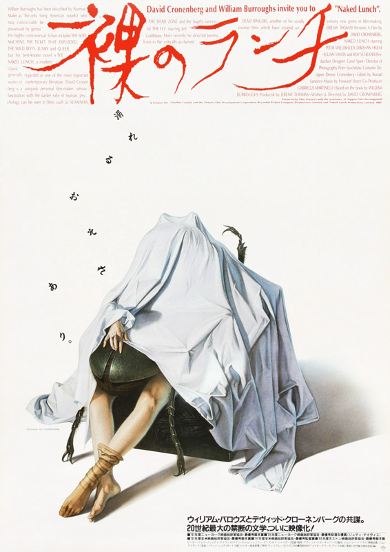 Softcore illustrator Sorayama of ‘Sexy Robot’ fame lent his airbrush technique to a couple of Japanese horror posters in the early 90s - David Cronenberg’s Naked Lunch and Peter Jackson’s Braindead.