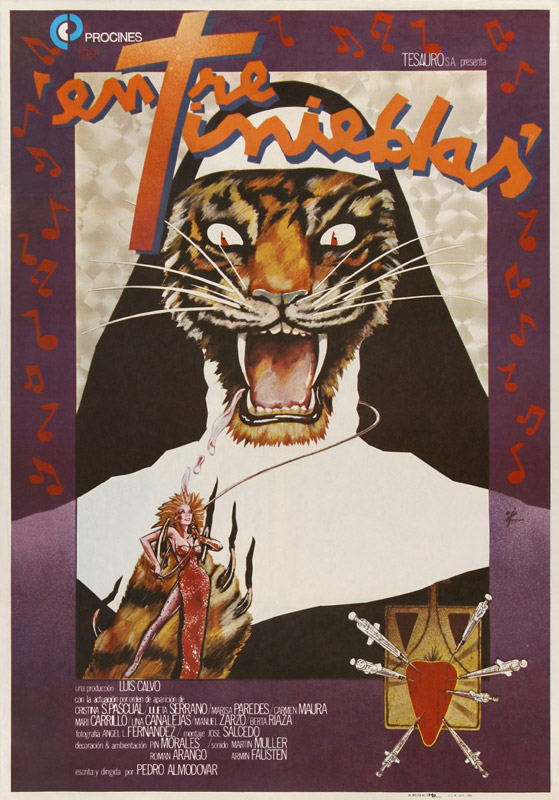 Another surrealist poster from Ivan Zulueta, who was no stranger to addiction. The English title, a pun referencing convent attire and shady clandestine obsessions, nicely alludes to the ironic mise-en-scene and innate hypocrisy of institutional religion. The original title translates more simply as ‘In Darkness’, as these women surely are.