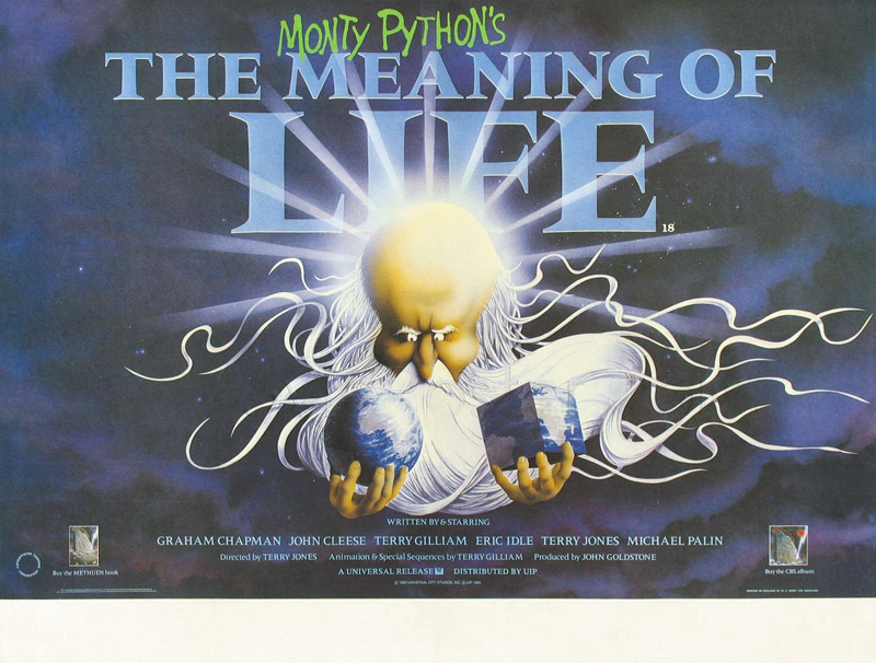 Just a few years after the Life Of Brian controversy, this Terry Gilliam poster flirts with blasphemy again to promote the comedy troupe’s acerbic tirade of philosophical satire.