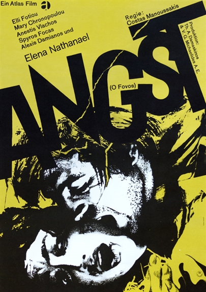 From the angular typography to the grisly image, this design does everything it can to induce discomfort and anxiety in the viewer, and embody the title through creative visuals (the Greek title O Fovos traslates literally as ‘The Fear’).
