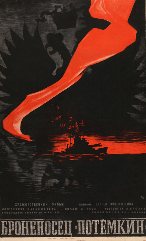 Key symbolic themes are expressed in this striking visual, the domestic USSR re-release poster by acclaimed artist Sergei Datskevich, and quite typical of post-war Soviet promos. It is one of the first posters I decided I wanted to own when I first became interested in originals, and thirty years later here it is.