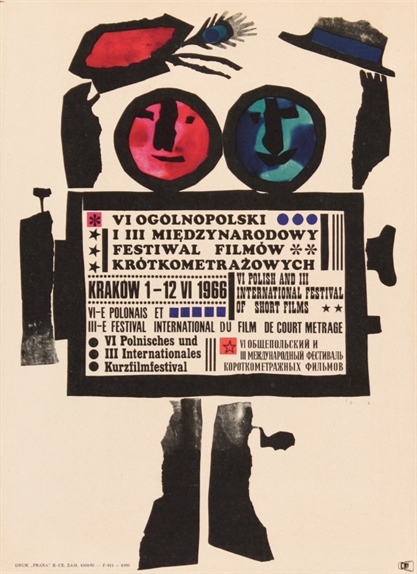 A lovely graphical pun from Lenica, with a film camera being transformed into two waving festival-goers.