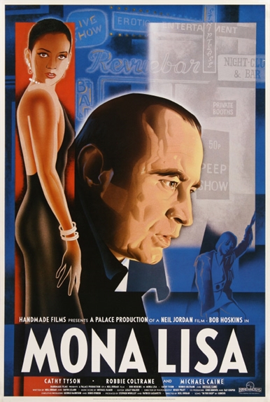 Lucinda Cowell’s soft airbrush illustration presents the awkward relationship of George and Simone, an uncouth working class gangster and an exotic beauty, against the backdrop of London’s seedy underworld. In an age of garish designs this poster opts for an Art Deco inspired style, perhaps likening George’s wistful yearnings to a romanticised longing for a bygone age. Soho’s neon signs are an ever-present reminder of their surroundings with Simone, for all her elegance, framed unmistakably with a red light.