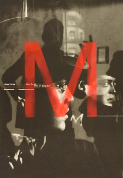 This piece has to be seen in person to be appreciated - the photomontage and the credits are litho-printed as expected, but the large pink ‘M’ has been entirely applied afterwards by hand, sprayed onto the poster with fluorescent aerosol paint.
